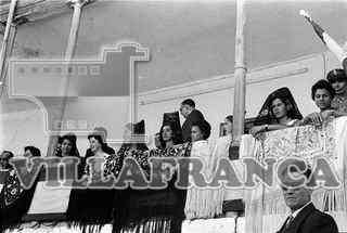 Novillada festividad de Santiago. Asistentes y mujeres con peineta en el palco