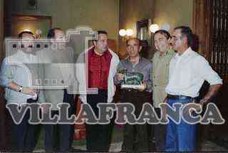 Aficionados taurinos con ganadero.Entrega premio.