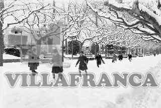Niños caminando en el Espolón, con la nieve.